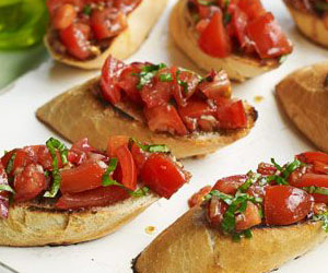 | Bruschetta | Pan tostado con ajo, aceite de oliva, tomate picado y albahaca. | ![]() |