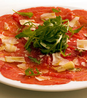 | Carpaccio | Finas láminas de carne cruda (generalmente ternera o pescado), aderezadas con aceite de oliva, limón y queso parmesano. | ![]() |