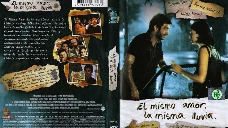 "El mismo amor, la misma lluvia". La historia sigue a Juan, un escritor que recuerda su relación con Laura, una mujer que conoció cuando ambos eran jóvenes. A través de los años, la película recorre momentos clave de su relación, desde su encuentro hasta las dificultades que enfrentan, incluyendo las separaciones y reencuentros. A lo largo de la trama, se exploran los altibajos del amor, la distancia y cómo el paso del tiempo cambia las perspectivas de las personas. El mismo amor, la misma lluvia es una reflexión sobre las relaciones, la memoria y la importancia de las segundas oportunidades.